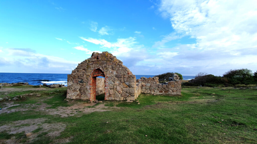 Hammerknude, hammer fyr og Salomons kapel. En smuk tur langs kysten med skiftende landskab (bakketræning). Langs vandet ser man massevis af små stendysser der er bygget af vandrerne der går tur i området. Der er MANGE små stendysser – imponerende syn.