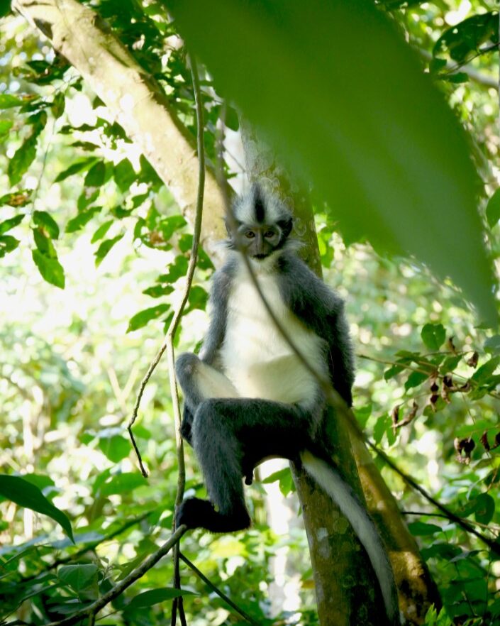 Cikaderne kvidrer deres øredøvende sang, og raslende lyde fra trætoppene på en vindstille dag, bevidner om dyrisk aktivitet. Den erfarne guide stopper op og peger mod et træ og siger ”punky monkey”. Lige foran mig poserer en charmerende Thomas Leaf Monkey (Thomas’s langur), der kun findes på Sumatra.