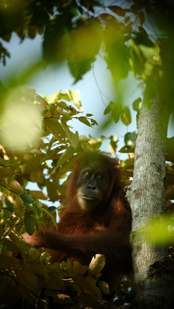 Min krop kæmper med det bakkede, stejle terræn og med den ulidelige hede. Vi er på vej mod Gunung Leuser National Park på Sumatra. Orangutanger kender dog ikke til landegrænser, så vi skifter spor, efter vores guide har fået et tip af en af de lokale. Lige udenfor nationalparken bevæger vi os på privat grund – med ejerens samtykke – ind på hans landbrug. Dog ikke som vi kender det, da han dyrker forskellige frugter, avocado og andre afgrøder iblandt klipper, grotter og junglens høje træer.