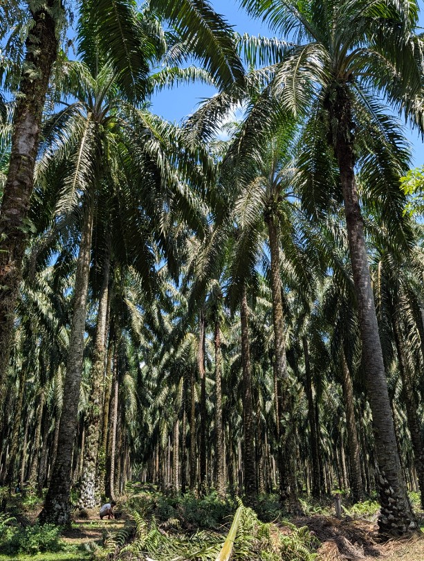 På vej mod Bukit Lawang, kørte vi forbi mange palmeplantager. Det er et flot syn, men vi ved også, at meget regnskov bliver ryddet for at skabe palmeolieplantager. Dermed forsvinder naturlige levesteder for blandt andet orangutanger. Olien bruges af de lokale til madlavning, og foruden dette, anvendes den også til alt fra fødevarer til kosmetik og rengøringsmidler – palmeolien er billig, og derfor den foretrukne olie af de lokale. Det er en stor industri og eksportvare.
