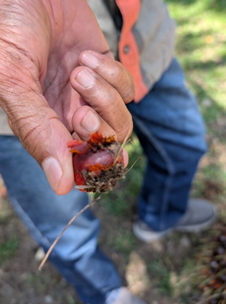 Det er hårdt arbejde at høste de 25-30 kilo tunge palmefrugter, og undervejs fik vi set hvordan det foregår. Jeg kan godt sætte mig ind i de lokales behov for billig olie til madlavning og de nødvendige lokale arbejdspladser der følger med i industrien. Og der er jo også altid flere sider af samme historie. Men der indfinder sig alligevel en tristhed, når man tænker på hvor mange naturlige ressourcer der bliver udryddet for at gøre plads til palmeplantager.