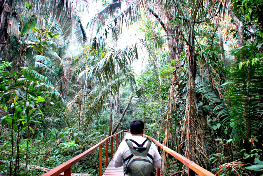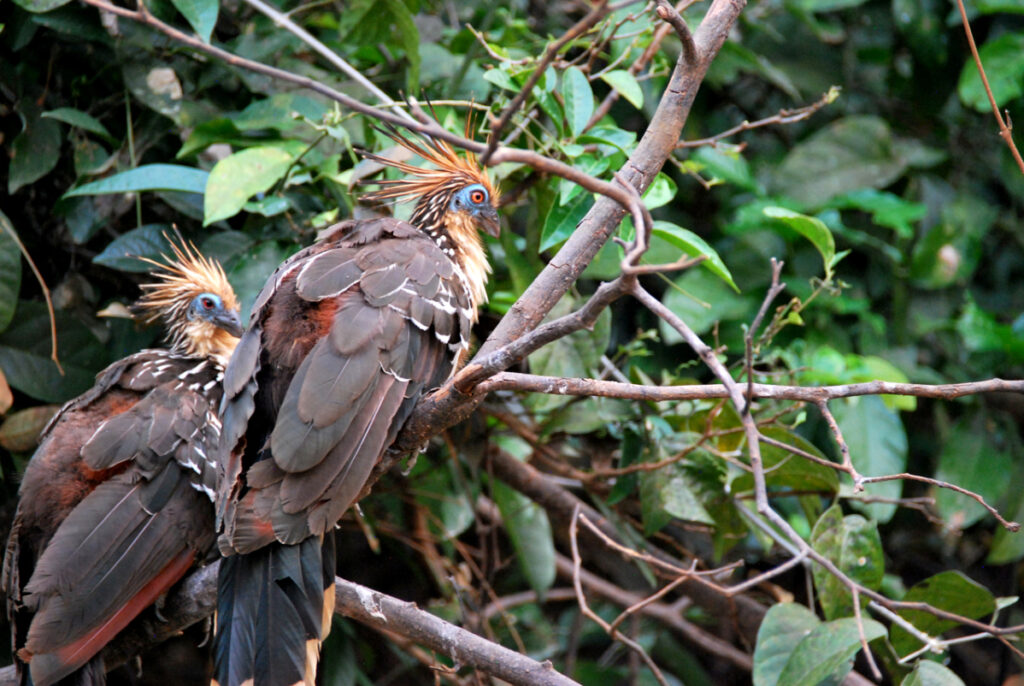 Senere samme dag var vi på gåtur i området, hvor vi så masser af legende aber og flagermus. På en sejltur i områdets egen lille dam oplevede vi et rigt fugleliv. Øjet kunne frydes ved synet af en kaiman (en lille alligator) og massevis af den ildelugtende, men utroligt smukke Hoatzinfugl, der også kaldes ”Stinkfuglen”, da den lugter af gødning.