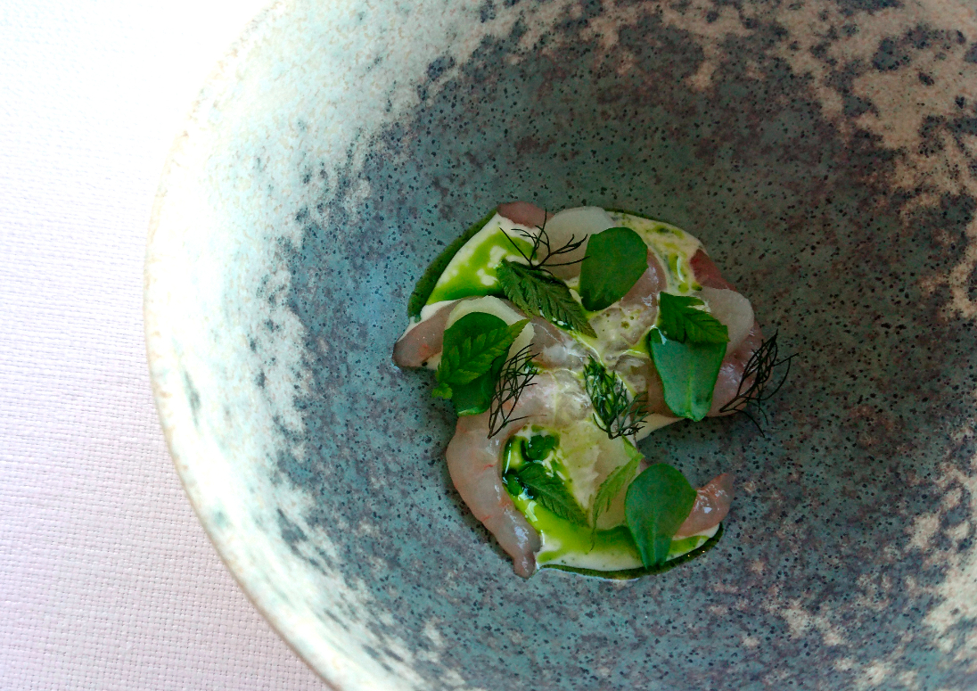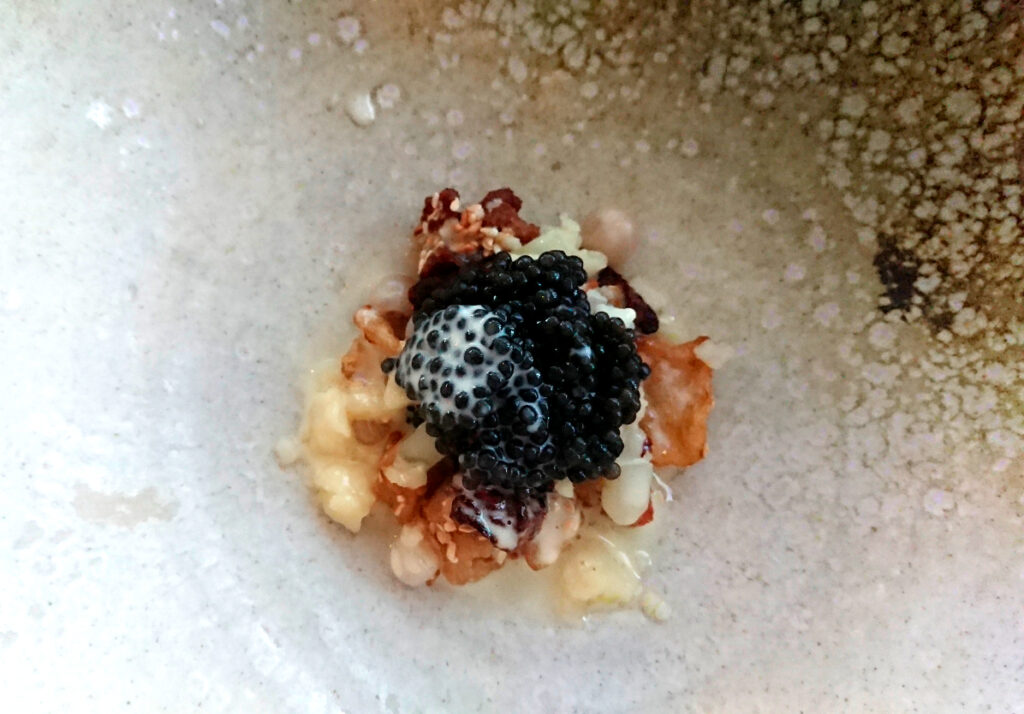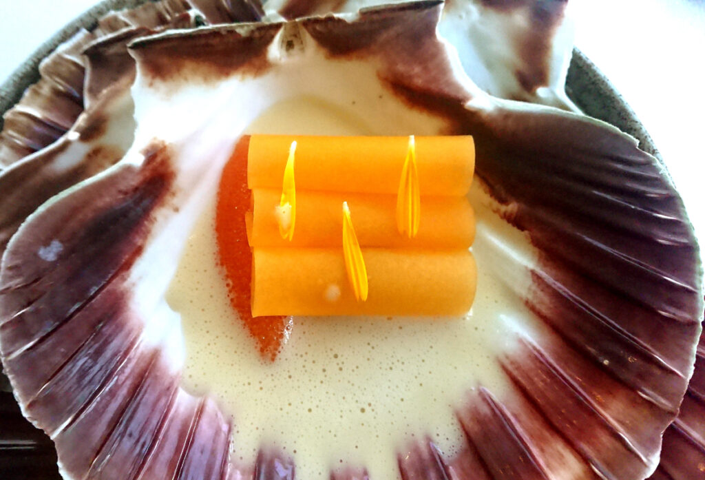 Middagen startede med 9 snacks – inden den 9-retters menu. Det er velsmag og nydelse i hver en bid. Et sansebombardement – for øjne, næse og gane. Hver enkelt ret, og hver enkelt snack var en øvelse i nydelse. Alle vine var afstemt til menuen, og man er mættet på indtryk flere dage efter sådan en svimlende fantastisk oplevelse.